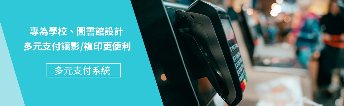 業界首創事務機多元支付系統,榮獲眾多市立圖書館、各級學校採用,讓圖書館管理更便利更省力