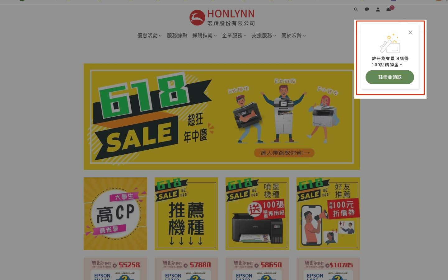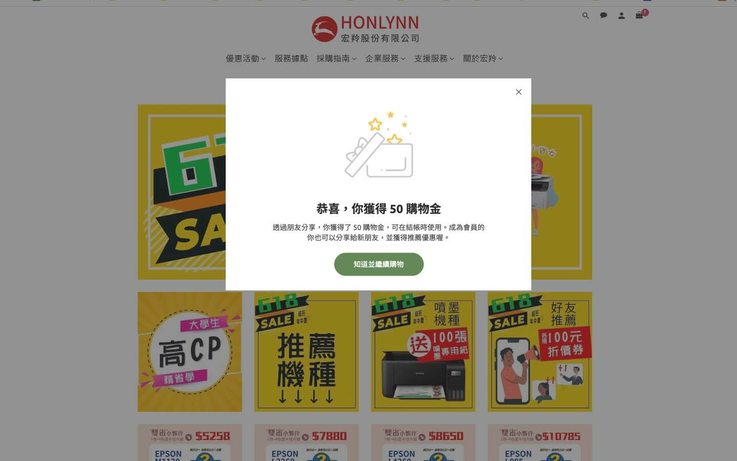2. 註冊成功後,畫面會彈出獲得購物金的通知
