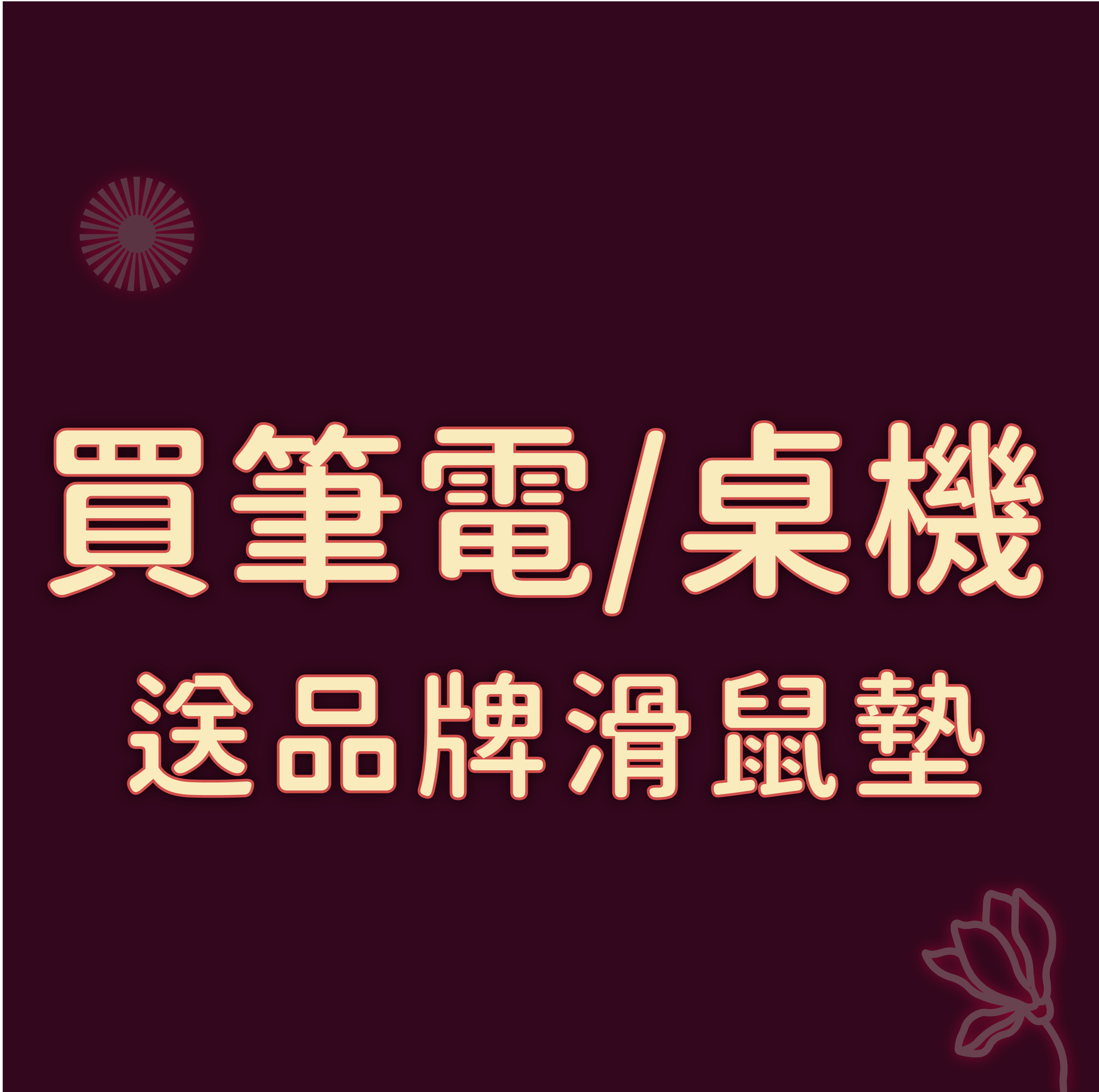 1.活動期間內於宏羚官網內指定之筆電/桌機任1個即送品牌滑鼠墊乙個(送完為止)(每位會員限送乙次且無累送)