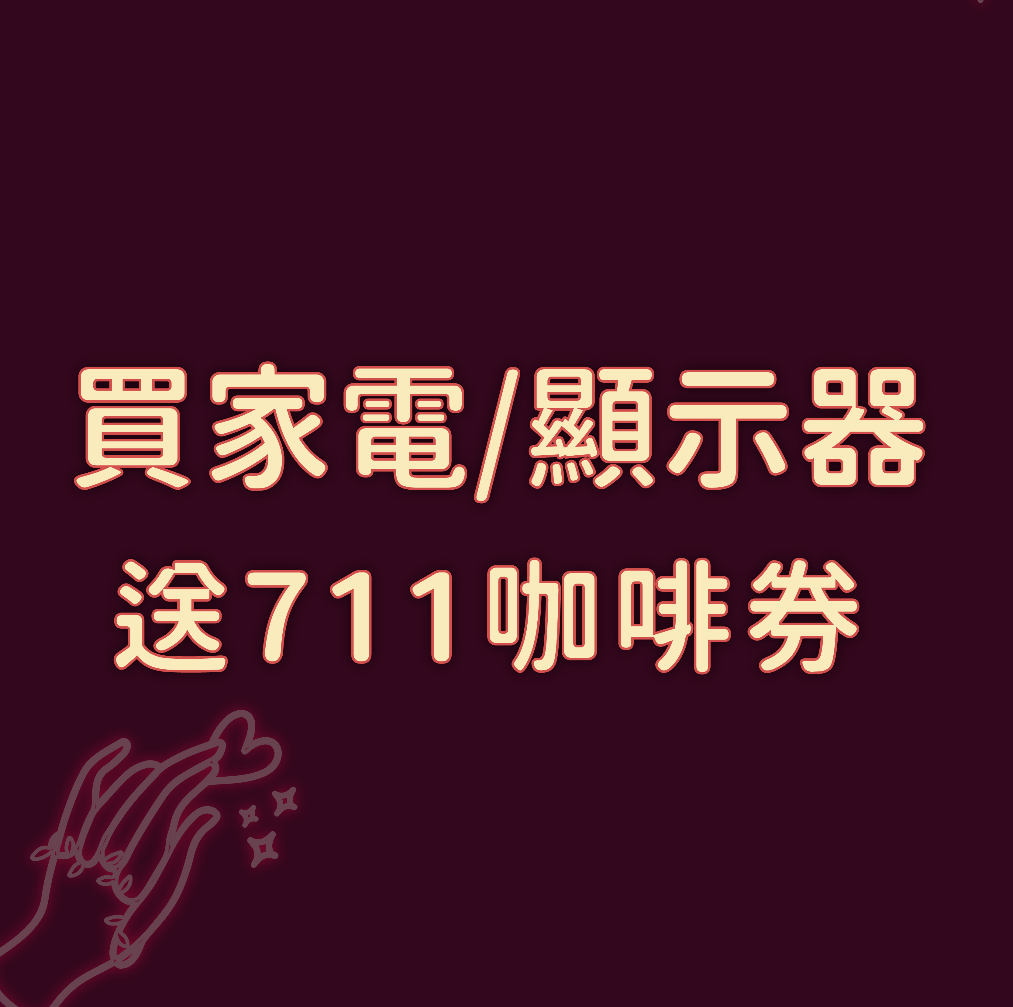 1.活動期間內於宏羚官網內指定之家電/螢幕任1個即送711咖啡券乙
