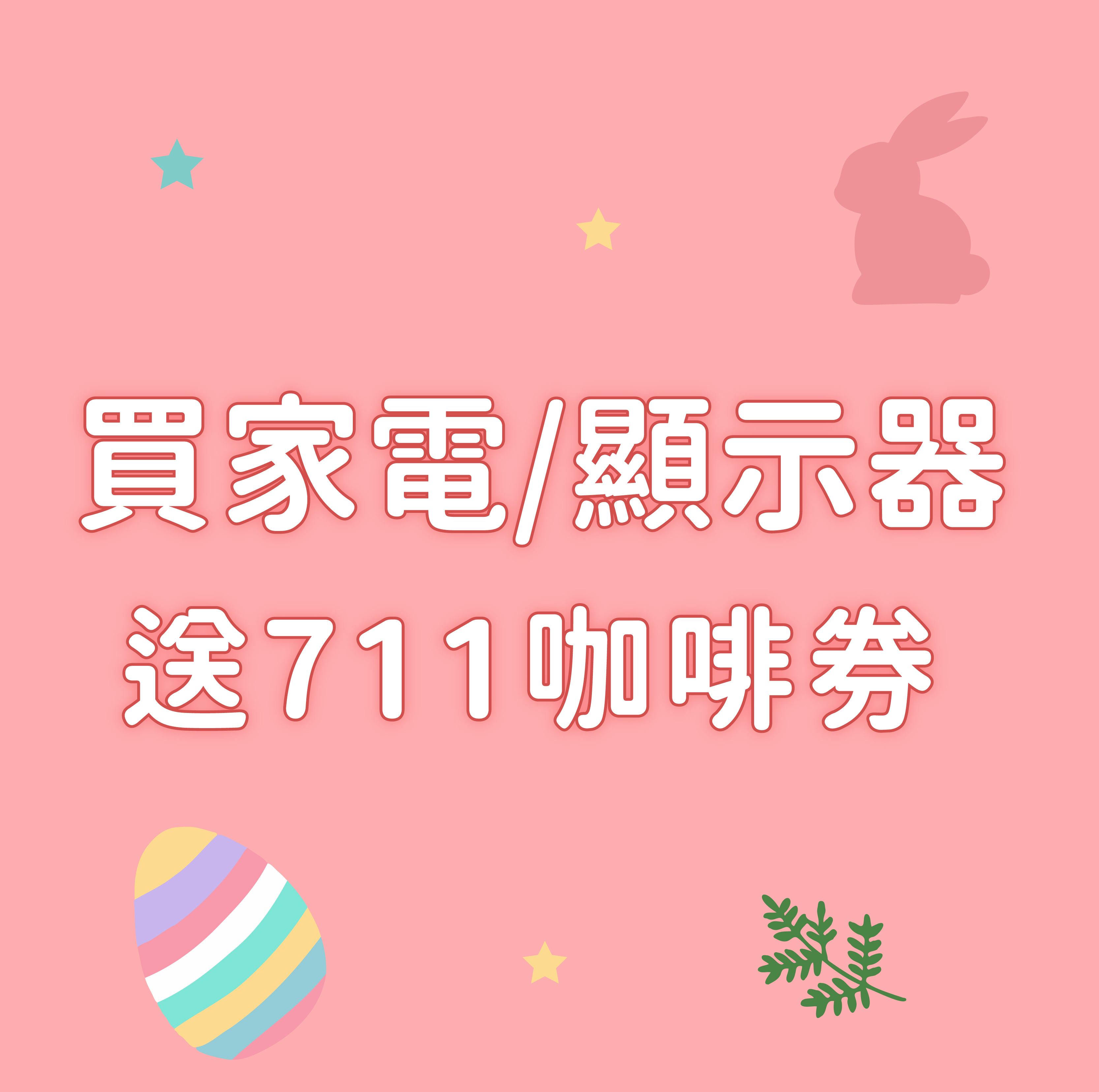 1.活動期間內於宏羚官網內指定之家電/螢幕任1個即送711咖啡券乙