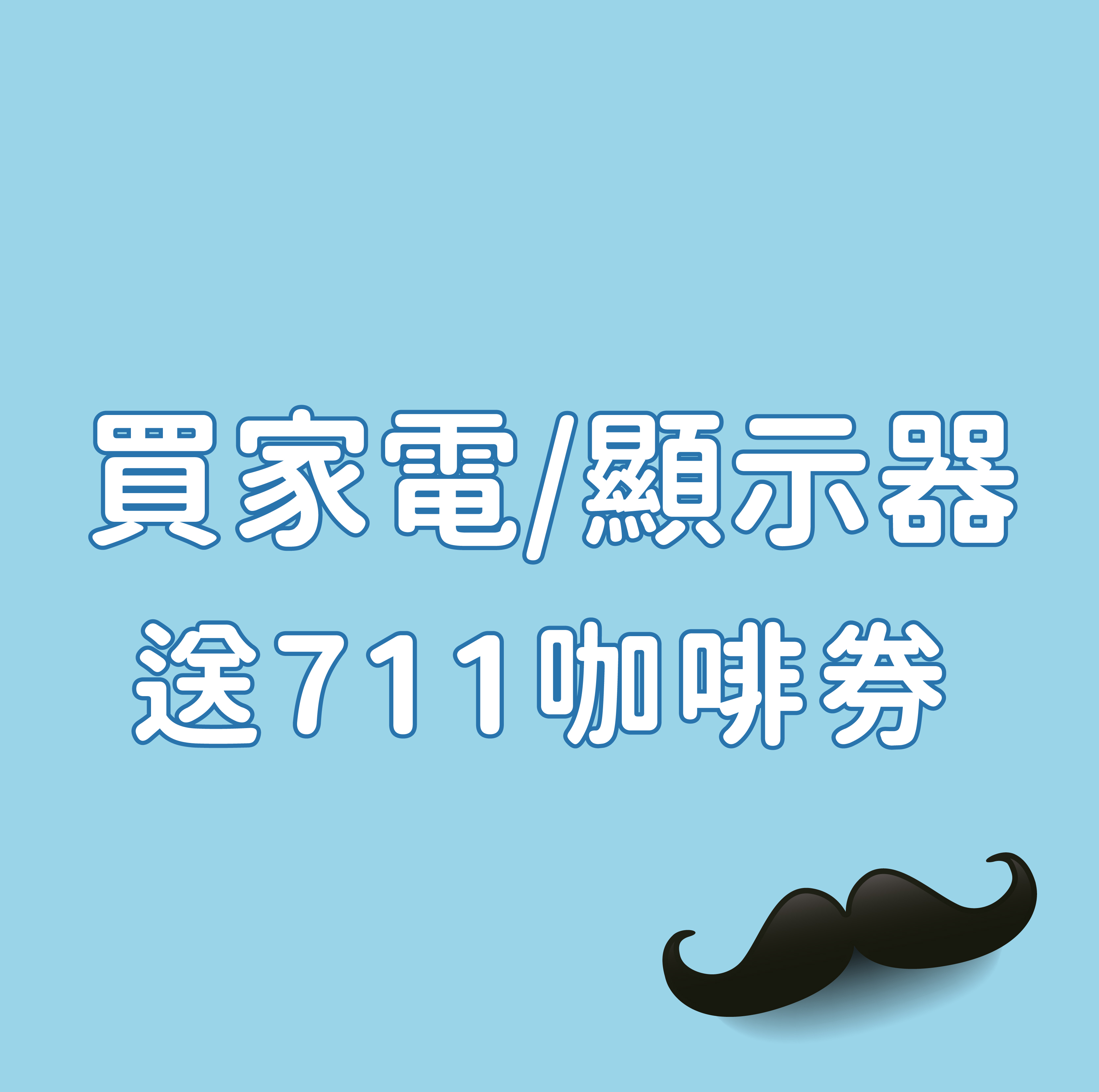 1.活動期間內於宏羚官網內指定之家電/螢幕任1個即送711咖啡券乙